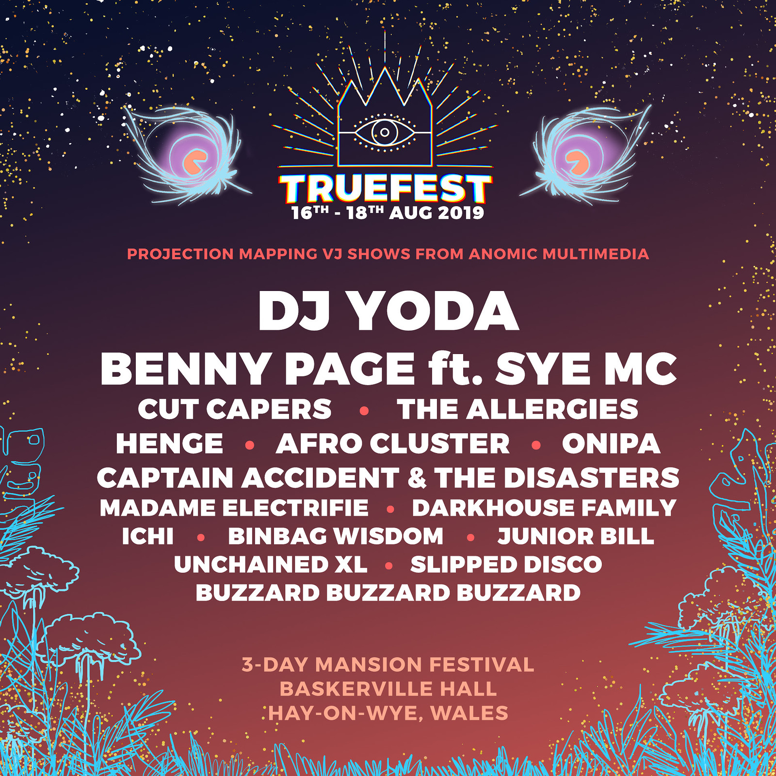 Truefest is an independent music and arts festival with a mansion, a swimming pool, hot showers, camping, hotel rooms, glamping and free parking reviewed as the "The friendliest festival in the UK" - Mpora.