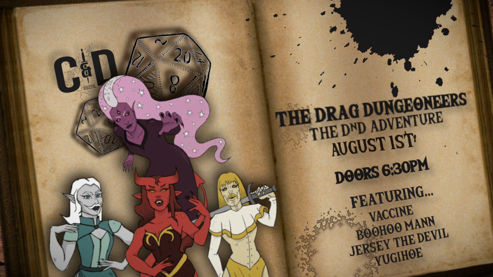 "Drag with a difference: twisted sword and sorcery themed genderfuckery taking inspiration from Dungeons and Dragons with dice-rolling and interactive warfare. Will you escape un-dragged?"