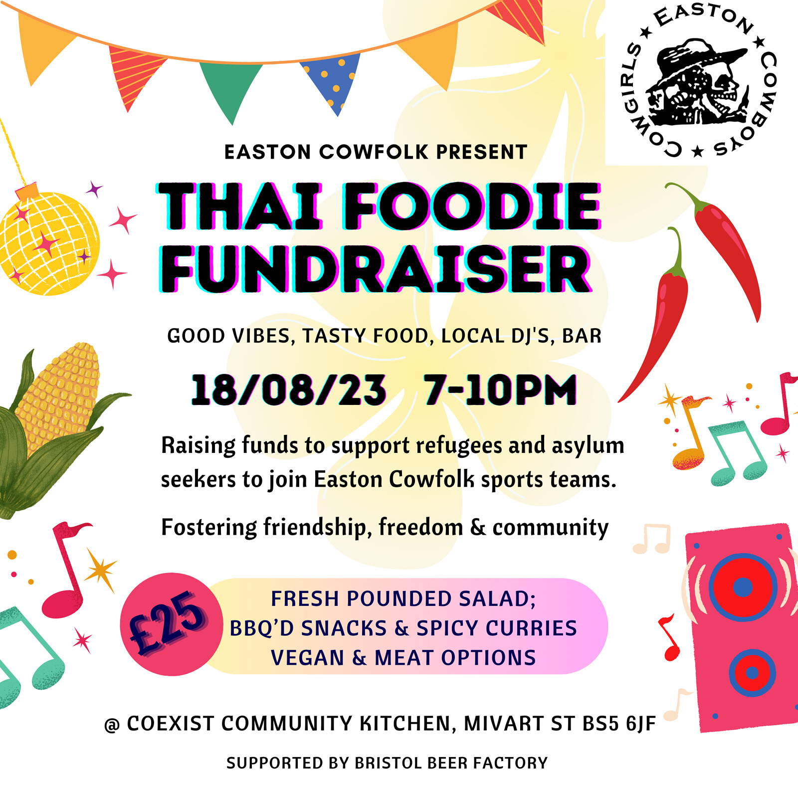 The Easton Cowfolk Football Club are hosting a delicious Thai BBQ at the Co-exist Community Kitchen, accompanied by music from a range of local dj’s.